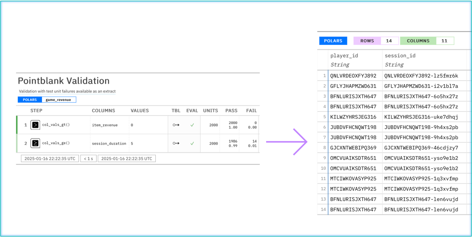 A Parquet dataset can be used for data validation, thanks to Ibis.